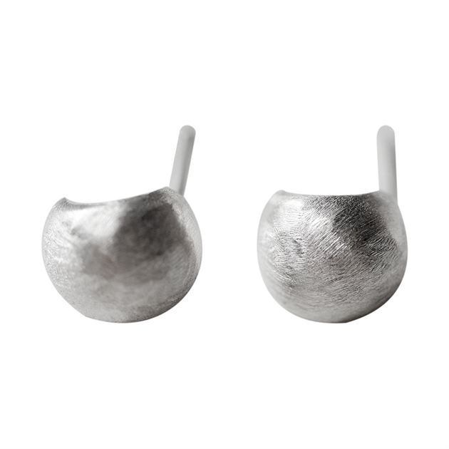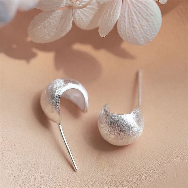 表面のテキスチャーが美しい、カジュアルなシルバーのアーチピアス。まるいカーブがフェミニンな印象で、コロンとした軽い着け心地の普段使いにもおすすめのジュエリー。