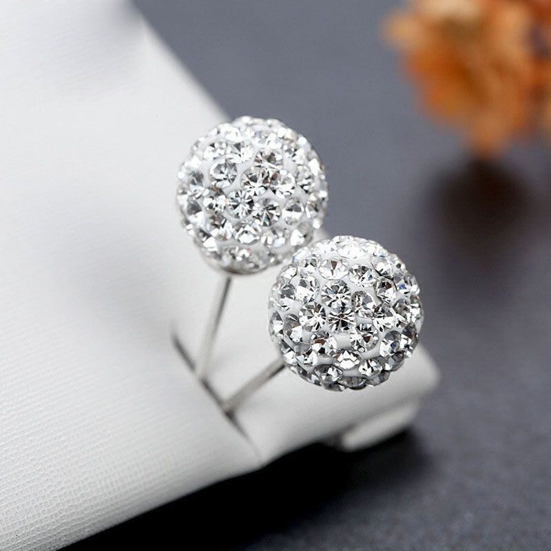 マイクロセッティング技術を使用してぎっしりと詰められたクリスタルが、キラキラと輝くミラーボールの可愛くお洒落なスタッドピアス。使いやすい直径6mmサイズ。
