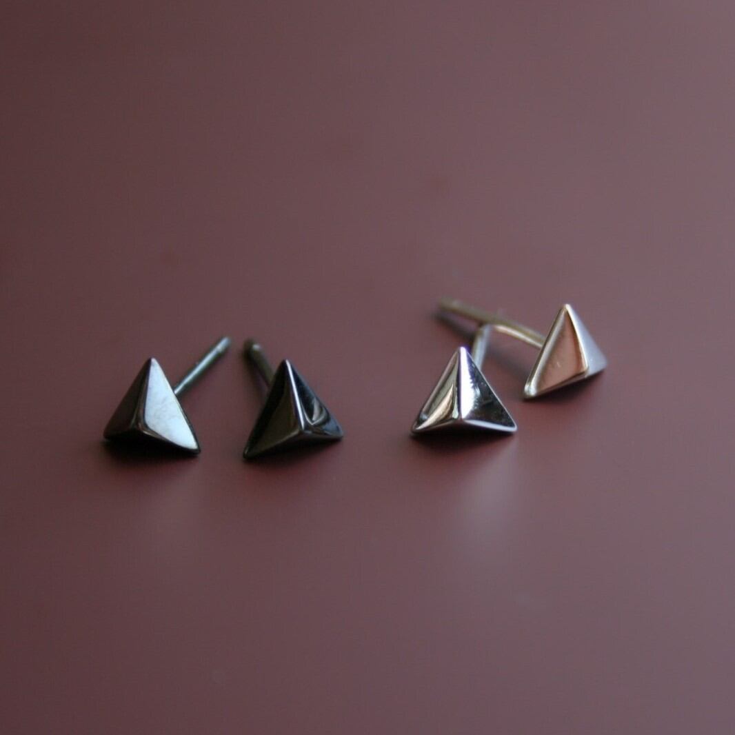 メタリックの輝きが美しい4面体のスタッドピアス。ブラックカラーは顔回りを引き締しめ、シルバーは肌を美しく魅せます。