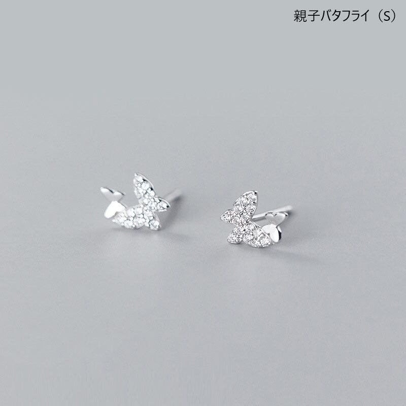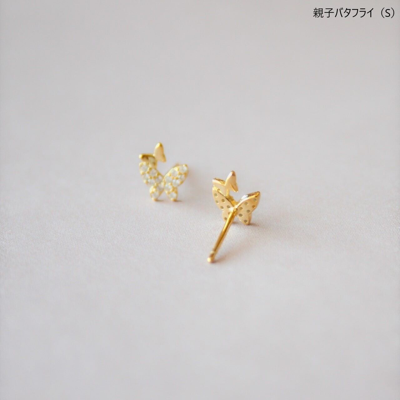 蝶々ピアス/バタフライピアス/羽「親子バタフライピアス(S)」シルバー/イエローゴールド