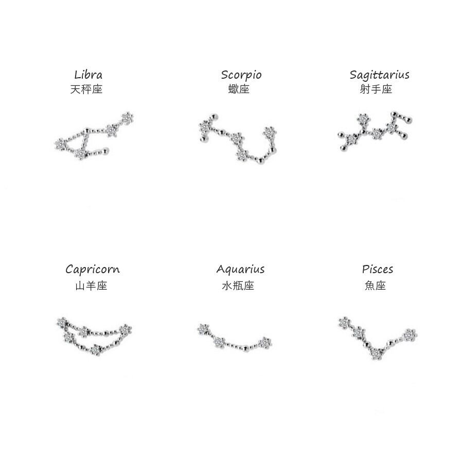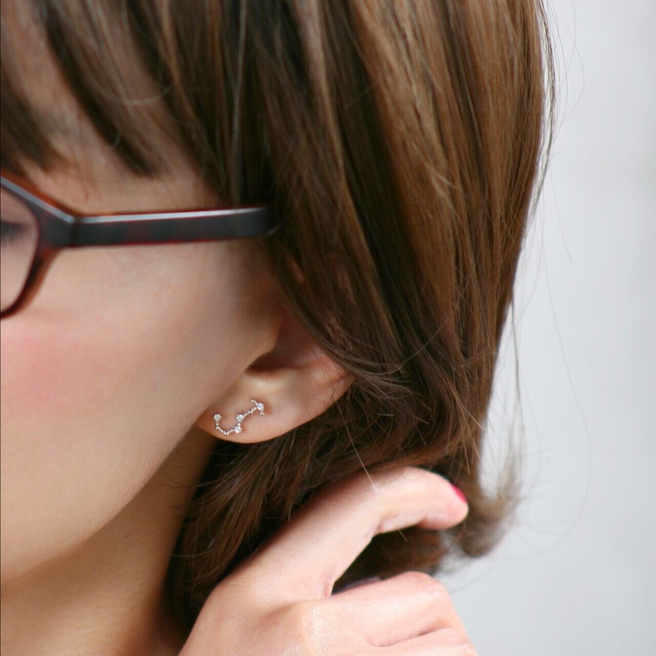 夜空に煌く各々の星座たち。シルバーの小さなドットと、キュービックジルコニアのストーンで形どる、繊細なスタッドピアス。幸運を引き寄せるお守りとしても親しまれている星座のジュエリーは、大切な人の当てはまる星座をみつけて、ちょっとしたプレゼントにもきっと喜ばれるモチーフです。星座一覧は下記をご参照ください。