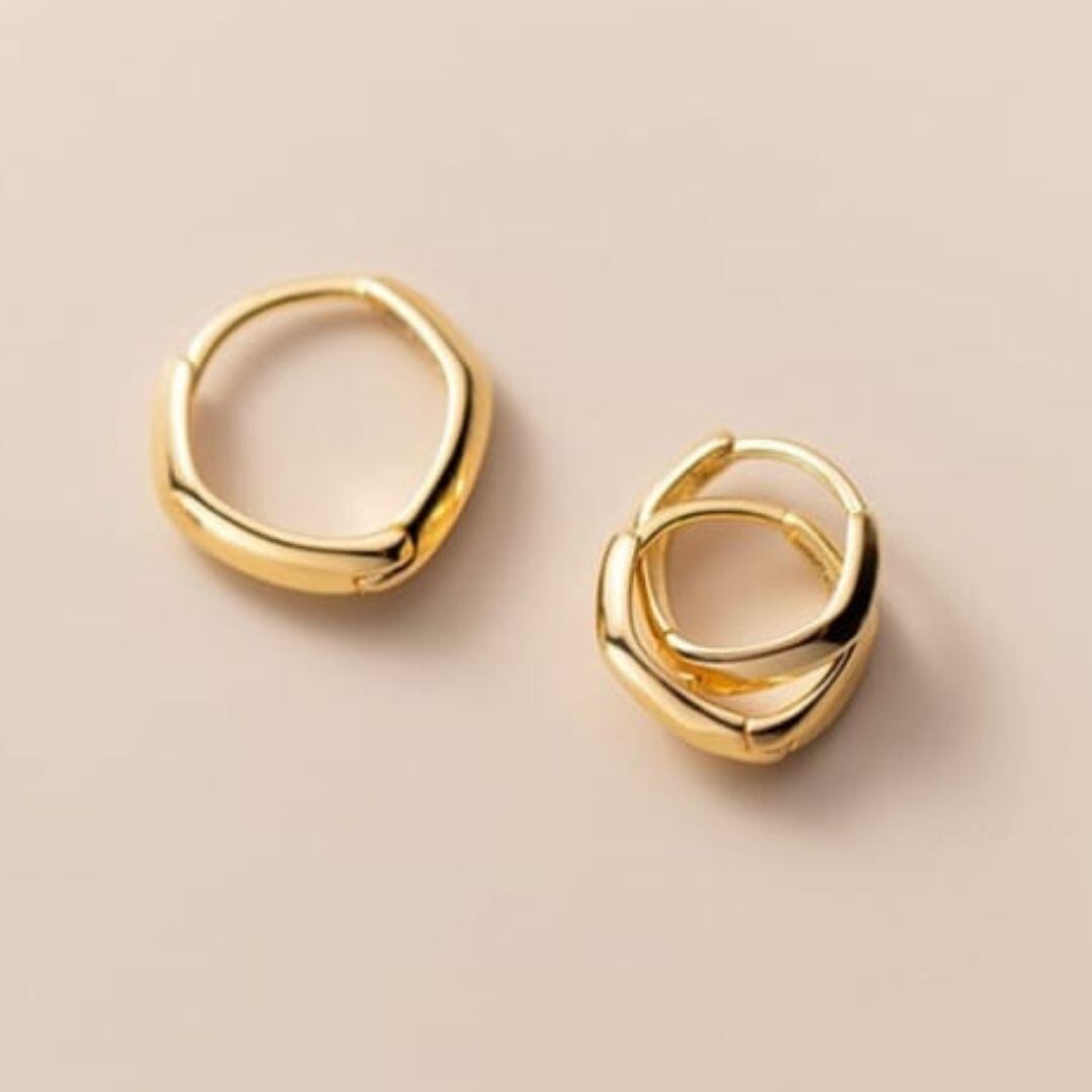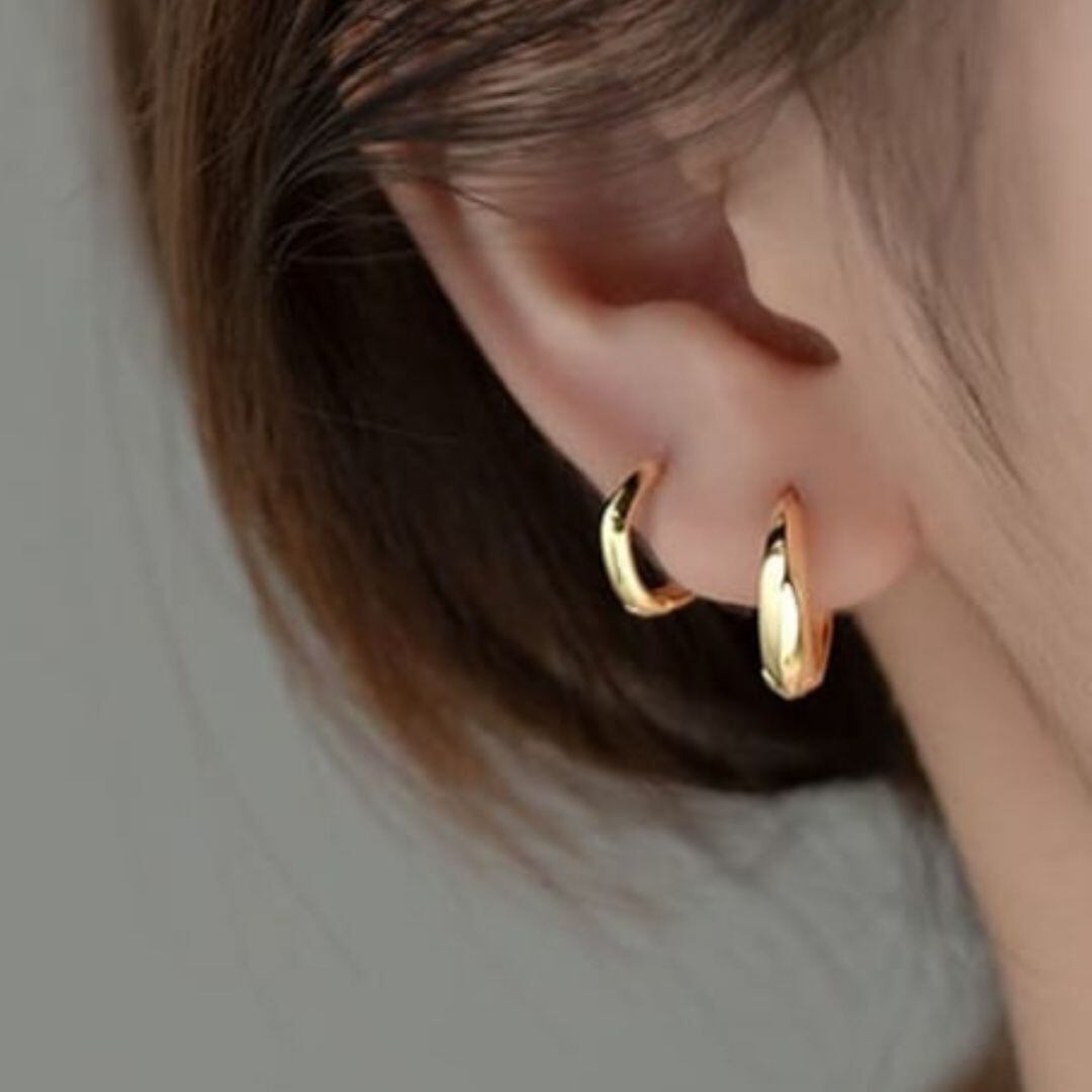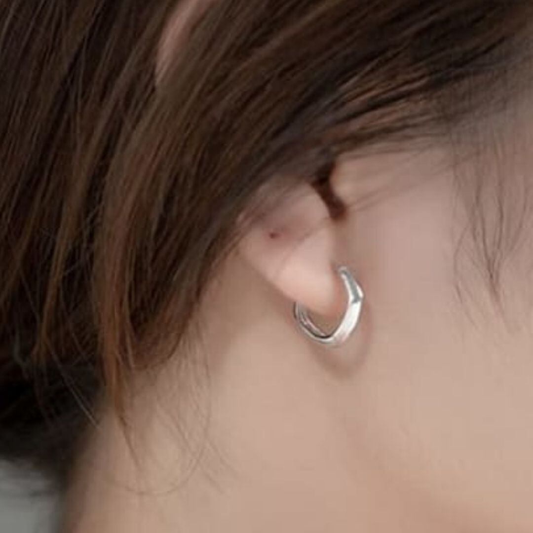 メタリックの重厚感と、コロンとしたフォルムのフェミニンさが両立したハギ―ピアス。